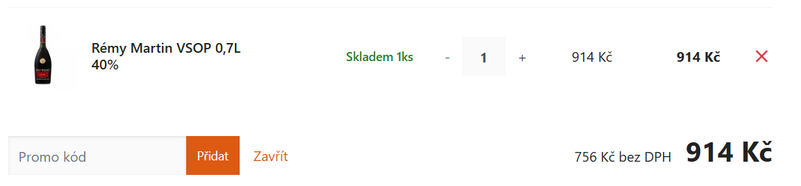 Na e-shopu si vyberte zboží a vložte jej do košíku. Slevový kód zadejte do kolonky „Promo kód“ a klikněte na tlačítko „Přidat“. Po kliknutí na toto tlačítko se Bottles and stories sleva automaticky odečte. Následně můžete dokončit objednávku tak, jak jste zvyklí.