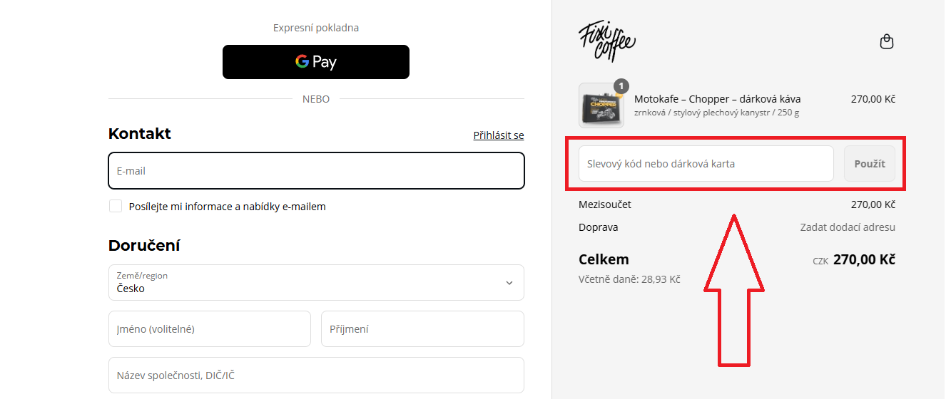 Vyberte si zboží, které chcete nakoupit, a vložte ho do košíku. V košíku najdete kolonku "Slevový kód nebo dárková karta". Do této kolonky vložte zkopírovanou slevu. Klikněte na tlačítko "Použít". Pokud je kód platný a splňujete podmínky, sleva se vám automaticky odečte od ceny nákupu.