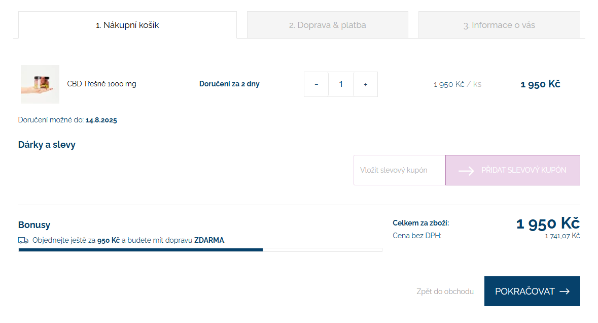 Vyberte si produkty, o který máte zájem, a vložte je do košíku. V samotném nákupním košíku najdete pod seznamem vybraných produktů pole pro vložení slevového kódu. Zkopírovaný kód sem vložte a potvrďte tlačítkem „Přidat slevový kupón“, čímž aktivujete slevu. Nakonec dokončete online nákup na e-shopu obvyklým způsobem.