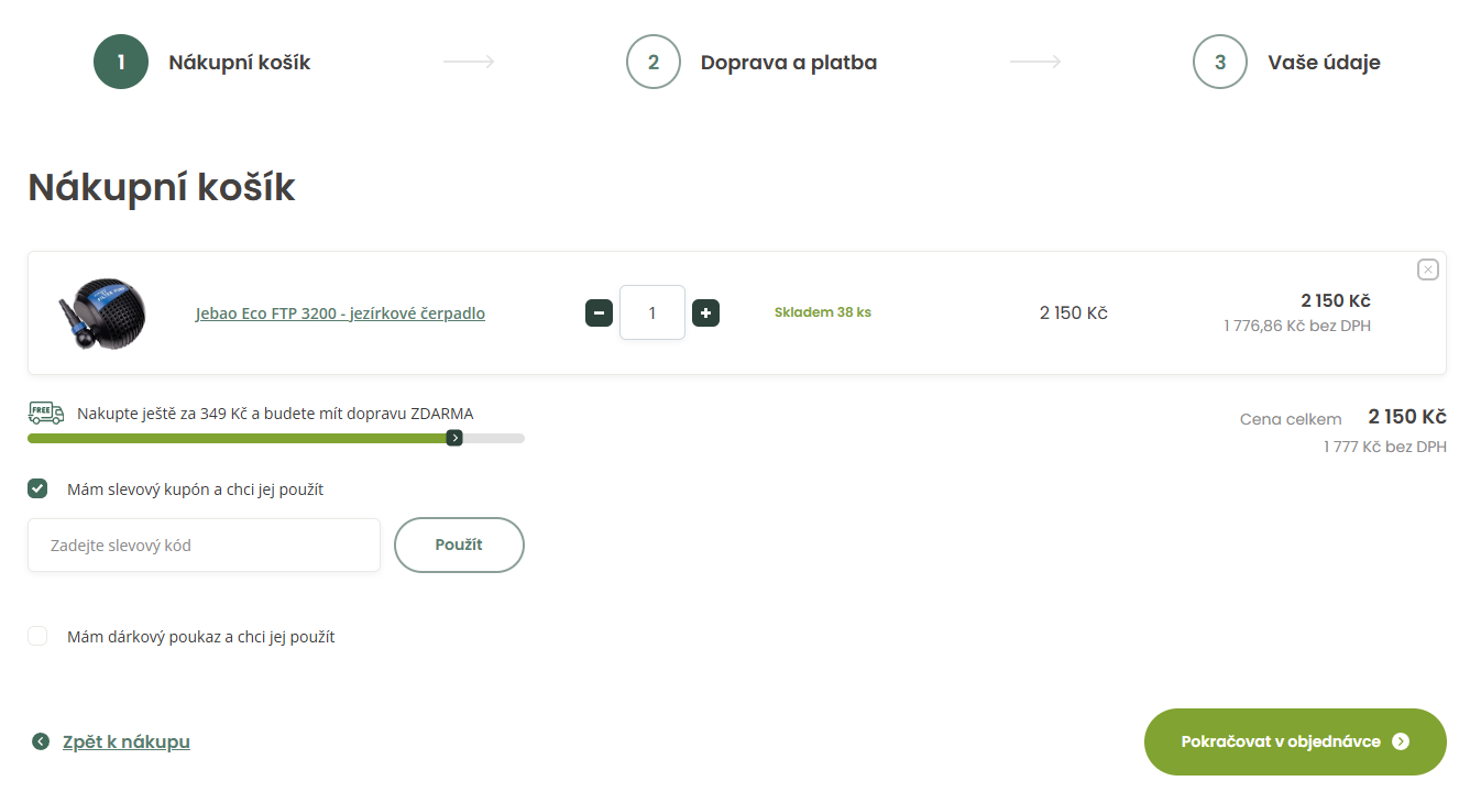 Vyberte si zboží, které vás zaujalo, a přidejte ho do košíku. Poté přejděte do košíku a ve spodní části stránky klikněte na možnost „Mám slevový kupón a chci jej použít“. Do zobrazeného pole zadejte svůj kód a potvrďte ho tlačítkem „Uplatnit“. Sleva se automaticky odečte z celkové částky. Následně dokončete objednávku obvyklým způsobem.