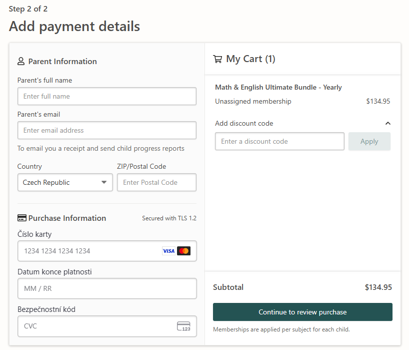 Vyberte si předplatné, o které máte zájem, a klikněte na Buy. V prvním kroku si zvolte požadovaný typ plánu a v dalším kroku objednávky najdete pole pro vložení slevového kódu. Zkopírovaný kód sem vložte a potvrďte tlačítkem „Apply“, čímž aktivujete slevu. Nakonec dokončete online nákup na e-shopu obvyklým způsobem.