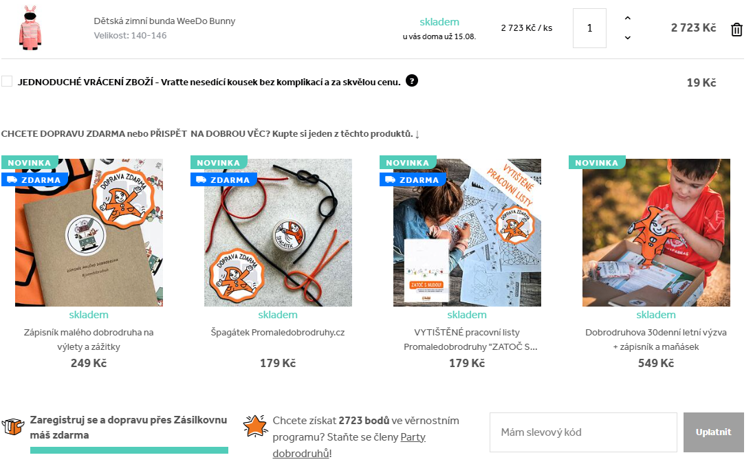Na e-shopu si vyberte zboží a vložte jej do košíku. Slevový kód zadejte v dolní části stránky do kolonky „Mám slevový kód“ a klikněte na tlačítko „Uplatnit“. Po kliknutí na toto tlačítko se ProMaléDobrodruhy sleva automaticky odečte. Následně můžete dokončit objednávku tak, jak jste zvyklí.