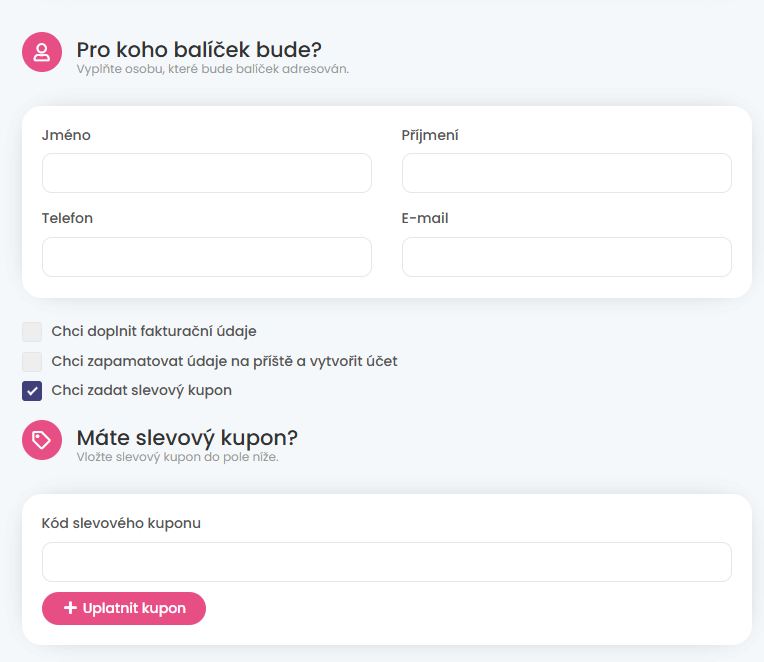 Vyberte si zboží, které vás zaujalo, a přidejte ho do košíku. Poté přejděte do košíku a ve spodní části stránky klikněte na možnost „ Chci zadat slevový kupon“. Do zobrazeného pole zadejte svůj kód a potvrďte ho tlačítkem „Uplatnit kupon“. Sleva se automaticky odečte z celkové částky. Následně dokončete objednávku obvyklým způsobem.